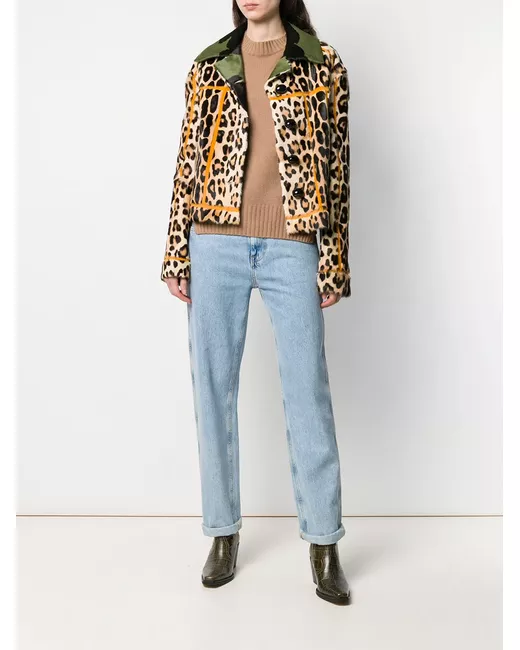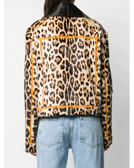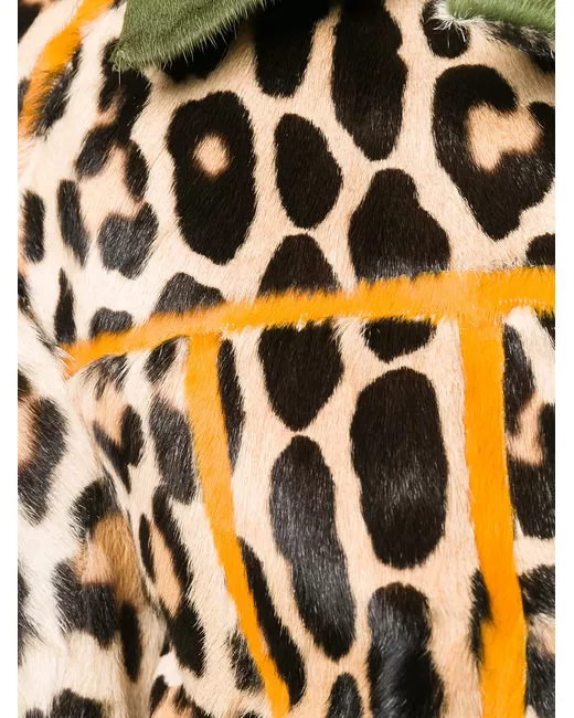 Brown calf hair and goat fur leopard print jacket from Liska featuring a contrasting oversized collar and a front button fastening.