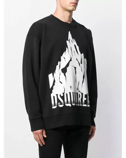 Black cotton logo sweater from DSQUARED2 featuring a crew neck, long sleeves, elasticated cuffs, an elasticated hem, a relaxed fit and a central logo.