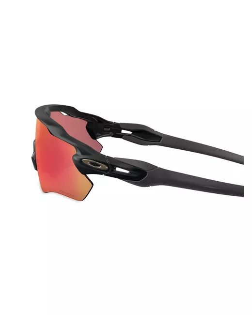 Black Radar Ev Path sunglasses from Oakley featuring aviator frames, a brand logo on external arm and red and orange tinted lenses.