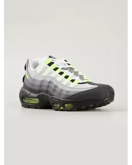 Tonal grey and green cotton 'Air Max 95' trainers from Nike featuring a round toe, a lace-up front fastening, a tonal gradient effect, a logo patch at the tongue, a signature Nike swoosh and a signature Nike Air sole.