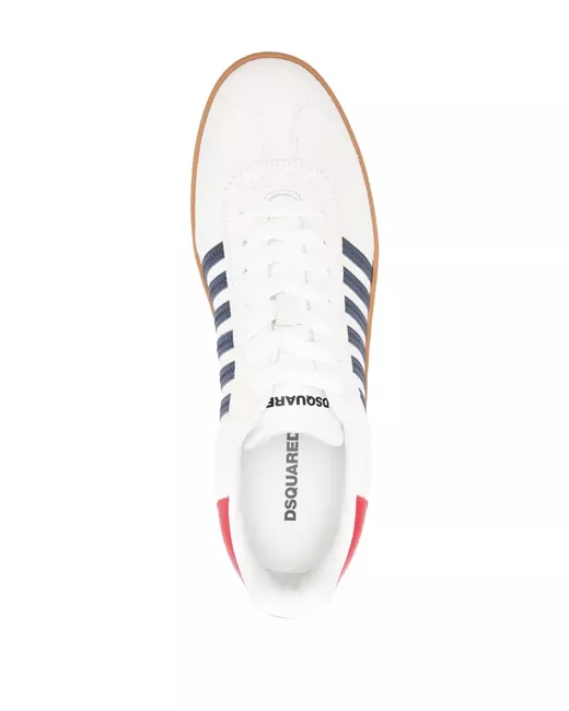 off-white/multicolour calf suede/calf leather panelled design stripe detailing "DAN" embroidery to the side logo-print tongue branded heel counter logo at the sole round toe front lace-up fastening padded ankle French terry lining branded leather insole flat rubber sole