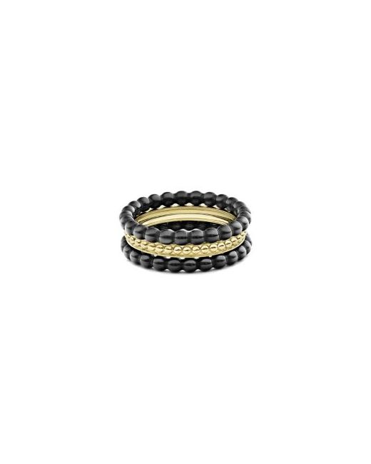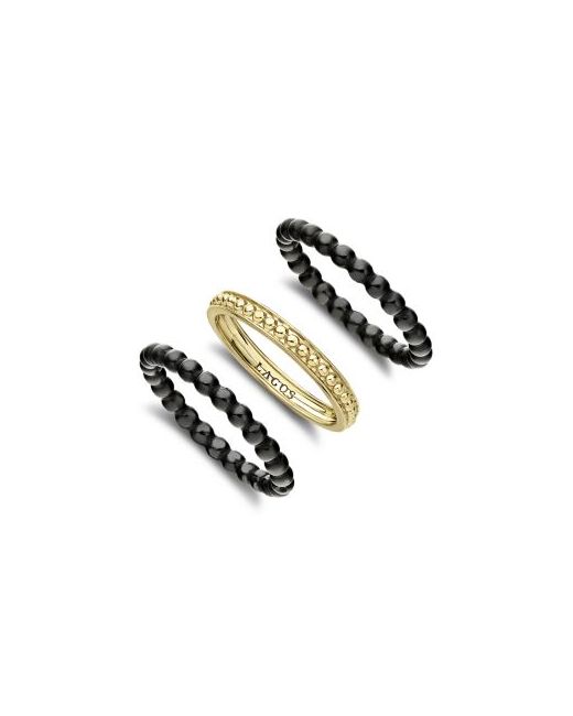 Lagos 18K Yellow Gold Caviar Gold Black Ceramic Stacking Rings, Set of 3-Jewelry & Accessories