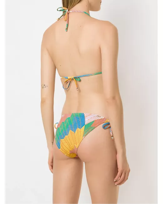 Multicolor printed triangle bikini set from Amir Slama featuring a triangle topwith adjustable straps for added comfort, a removable bra support, spaghetti straps, a back tie fastening, and a brazilian style bottom with side tie fastenings, a lining, an elasticated trim, an exclusive print and a mid-weight stretch fabric with a fresh touch. Please note the print may differ slightly from the item pictured. Swimwear must be tried on over your own garments.