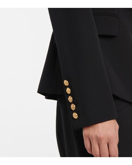 Material: 100% virgin wool. Pockets: breast pocket, internal pocket, flap pockets. Designer color name: Noir. Lining: fully lined, 52% viscose, 48% cotton. Buttoned cuffs. Closure: double-breasted buttoned front. Care instructions: dry clean. Shoulder pads.