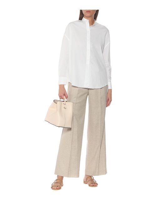 Materiale: 86% cotone, 14% seta. Trattamento: lavaggio in acqua fredda. Colore del designer: White. Polsini con bottoni. Chiusura: abbottonatura frontale. Cotone.