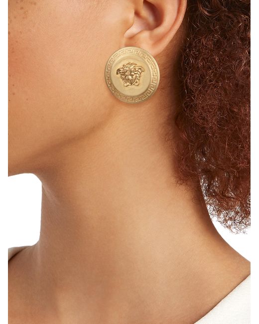 Medallion inspired studs with iconic Medusa logo. Goldtone Post back Made in Italy SIZE Drop, 1.18" ABOUT THE BRAND. Fashion Jewelry - Trend Jewelry > Saks Fifth Avenue > Barneys. Versace. Color: Gold.
