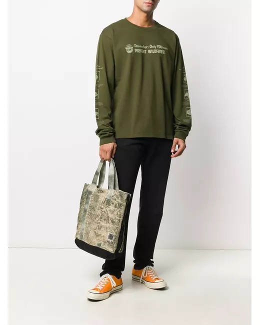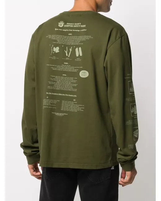 green organic cotton slogan print to the front long sleeves round neck