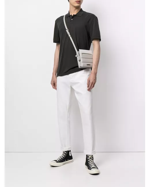 Colletto stile polo, falsatura frontale con abbottonatura, maniche corte e orlo dritto. Materiale: cotone. Colore: grigio.