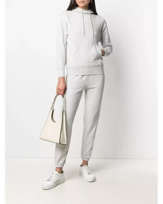 light grey cotton slouchy drawstring hood long sleeves front pouch pocket straight hem