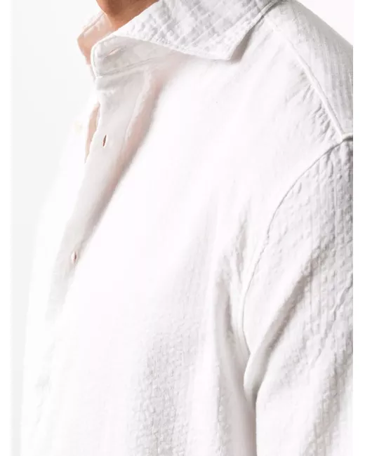 off white cotton straight-point collar front button fastening long sleeves buttoned cuffs curved hem