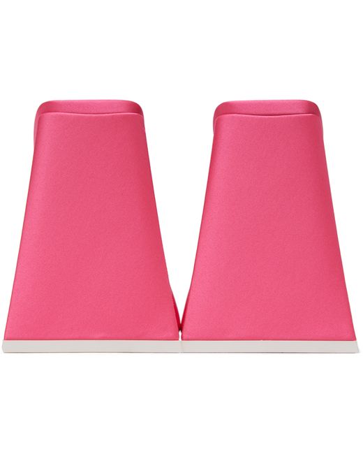 Satin slip-on heeled sandals in pink. · Open square toe · Logo printed at padded leather footbed · Grained leather lining · Modified block heel with rubber injection · Leather sole · Heel: H4 in Supplier color: Pink