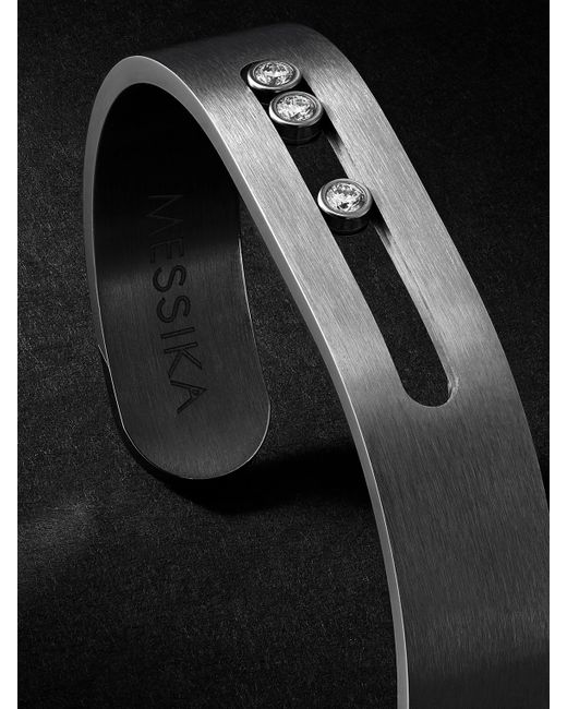 Striking in its simplicity, the centrepiece of Messika's 'Move' cuff is the loose-set diamonds, which glide freely with the turn of your wrist. It's crafted from graphite titanium, which has been satin-brushed for an elegant, muted finish.