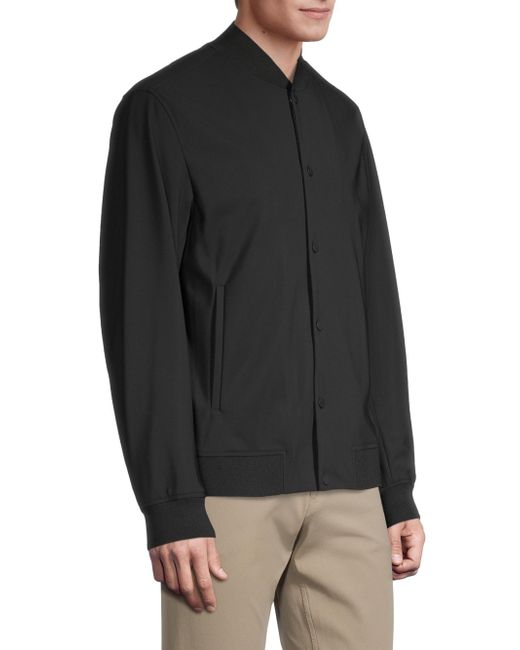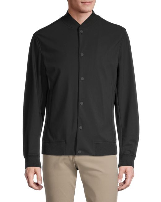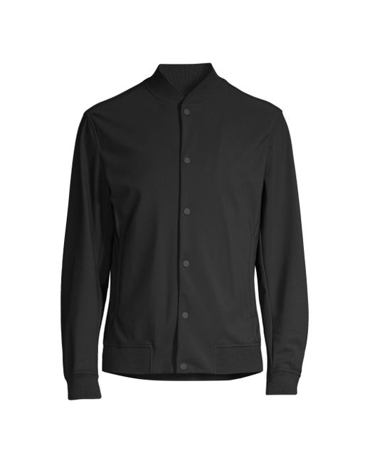 Made of a polyamide blend, this jacket features a standing collar, side slip pockets, and long sleeves with ribbed cuffs. Standing collar Snap-front closure Side slip pockets Long sleeves Ribbed hem & cuffs 73% polyamide/27% elastane Dry clean Imported SIZE & FIT About 28" from shoulder to hem. Modern Coll & Outerwear - Theory > Theory > Saks Fifth Avenue > Barneys. Theory. Color: Black. Size: Medium.