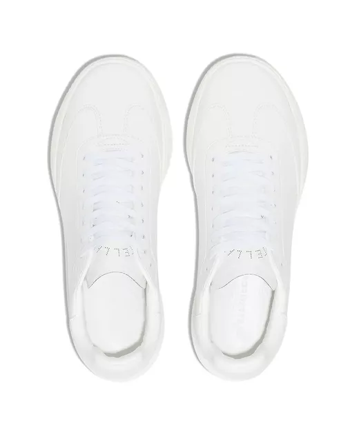 snow white faux-leather logo-embossed tongue branded heel counter contrasting heel counter round toe front lace-up fastening chunky rubber sole