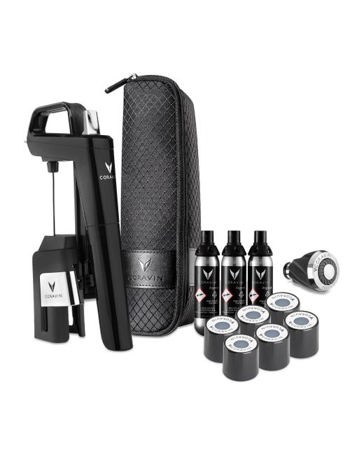 Wine lovers can now preserve their favorite still bottles for weeks, months, and even years with this sophisticated wine preservation system, which allows the user to pour their drink without ever pulling the cork. Includes preservation system, six screw caps, three capsules, one aerator, and one carry case Device: injection molded plastic/stainless steel/elastomers Capsules: steel/injection molded plastic Screw caps: injection molded plastic/silicone/polyethylene Aerator: injection molded plastic/silicone/stainless steel Hand wash Imported SPECIFICATIONS 2" W X 8.5" H X 3.75" D. Misc Lsd Dept - Home Leased Mp > Coravin > Saks Fifth Avenue > Barneys. Coravin. Color: Black.
