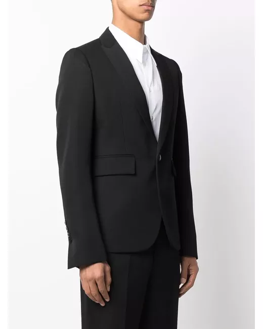 black wool/cotton blend slim cut classic lapels long sleeves two side flap pockets