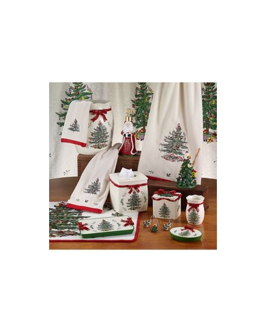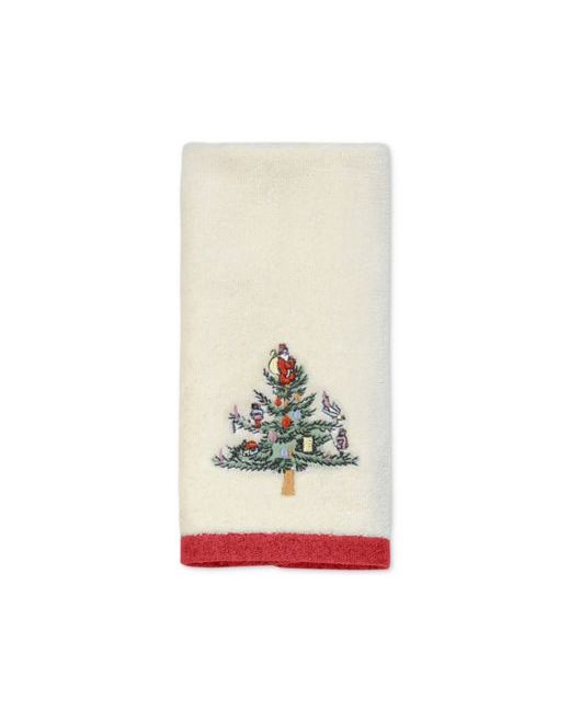 Bring charming holiday nostalgia to your bath with the Spode Christmas Tree Cotton hand towel from Avanti. The iconic conifer silhouette is beautifully embroidered on this cotton velour towel with holly accents and festive red trim.