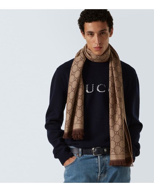 Sciarpa lana GG jacquard da Uomo di colore Marrone