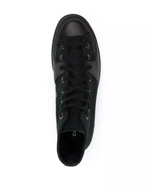 Nero, cotone, tela, caratteristica applicazione Chuck Taylor, design monocromo, design a inserti, punta tonda, punta tonale, punta in gomma, chiusura frontale con lacci, soletta con logo e suola piatta in gomma.