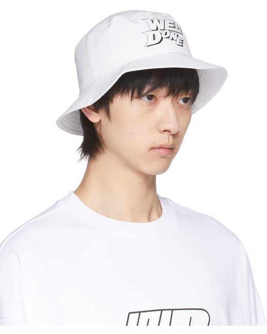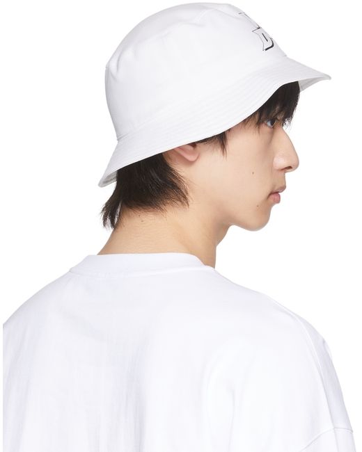 Twill bucket hat in white. Logo bonded in black and white at face. · Quilted brim · Satin lining Supplier color: White