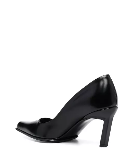 black leather high-shine finish pointed toe slip-on style branded heel counter high heel