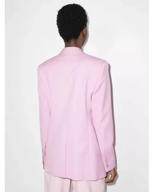 peak lapel blazer from STELLA MCCARTNEY featuring pink, wool, peak lapels, front button fastening, long sleeves, buttoned cuffs, chest welt pocket, front flap pockets, central rear vent and full lining.