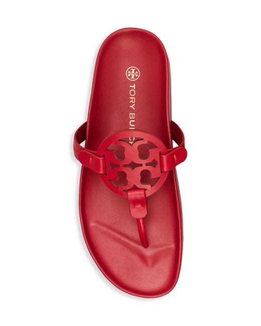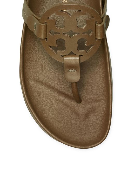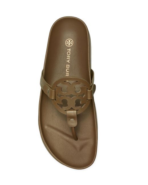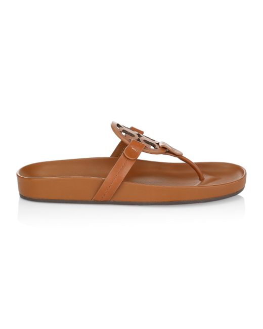A sporty take on Tory's signature Miller thongs are designed with an ultra-comfortable molded footbed. Leather upper Thong toe Slip-on style Molded footbed Lining: Leather Rubber sole Imported ABOUT THE BRAND Since debuting her brand in 2004, New York-based designer Tory Burch has made an impact on the fashion world with her handbags and shoes, and playful-yet-polished clothing. Today, Burch remains inspired by color and travel, with her vibrant collections bursting with prints, and her instantly recognizable double-T logo drawing from Moroccan architecture. Women's Shoes - Tory Burch Womens Shoes > Tory Burch > Saks Fifth Avenue > Barneys. Tory Burch. Color: Bourbon Miele. Size: 9.5.
