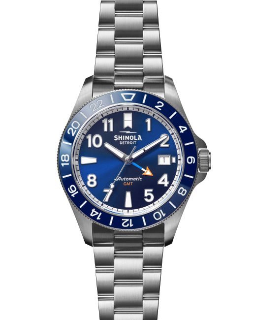 Powered by the sw200-one automatic movement, Shinola's watch is meticulously engineered to withstand extreme pressure and has a durable, anti-reflective sapphire crystal and an anti-magnetic shield. Swiss quartz Midnight blue semi-matte aluminum bezel Cardinal glossy enamel dial Bar hour markers Date display Deployent buckle Stainless steel Professional care Made in USA FEATURES Water resistant to 10 ATM SIZE Stainless steel round case, 43mm (1.7") Stainless steel bracelet, 18mm (0.71"). Men Accessories - Watches And Gifts > Shinola > Saks Fifth Avenue > Barneys. Shinola. Color: Navy. Size: 40.