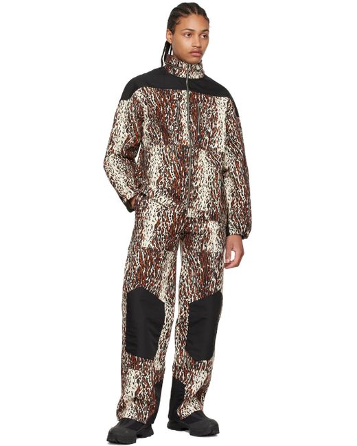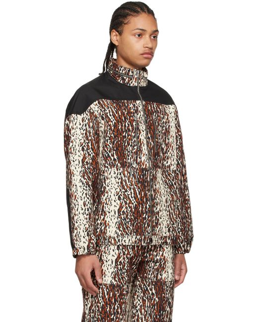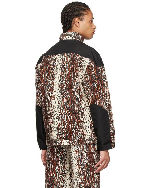 Paneled organic cotton canvas jacket. Leopard pattern printed throughout. · Stowaway hood at stand collar · Zip closure · Embroidered graphic at chest · Nylon canvas shoulder · Patch at elbows · Zip pockets · Elasticized cuffs · Unlined Supplier color: Leopard