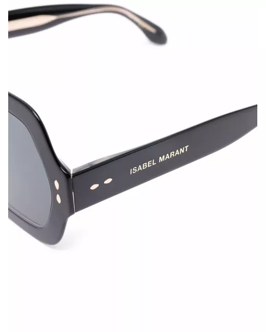 black acetate hexagonal face tinted lenses gold-tone logo lettering gold-tone hardware straight arms curved tips