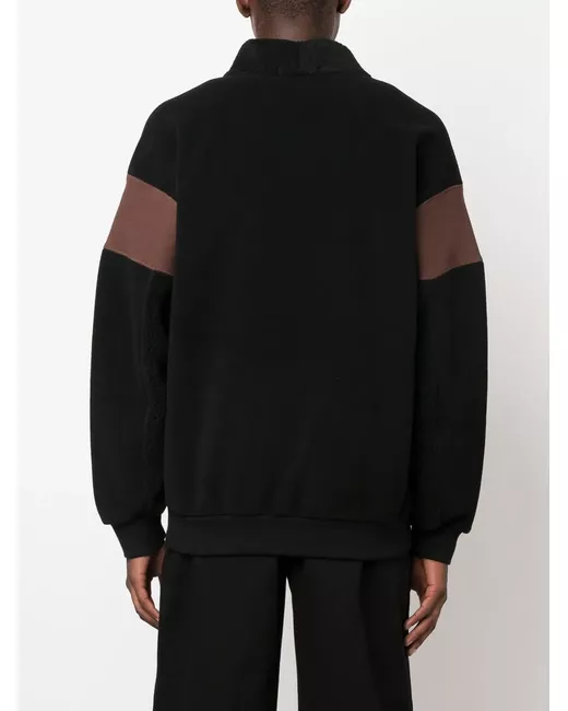 Kimono contrast-panel jacket from AMBUSH featuring black, cotton, contrasting panel detail, V-neck, wrap design and long sleeves.