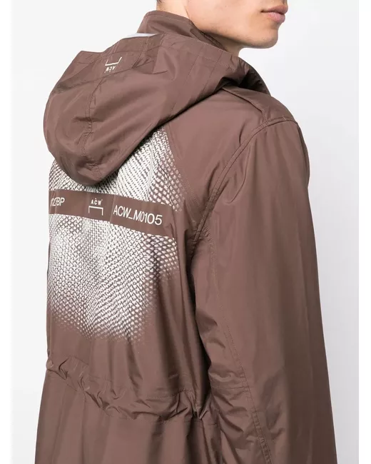 brown/white graphic print logo print to the front logo print to the rear funnel neck front zip fastening storm flap long sleeves detachable hood elasticated toggle detailing two button-fastening chest pockets two zip-fastening chest pockets two front flap pockets