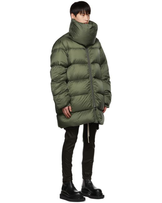 Quilted down-filled nylon satin jacket. · Press-stud fastening at funnel neck · Zip closure · Welt pockets · Inset rib knit cuffs · Webbing strap at back · Press-stud fastening at back · Zip pockets at interior · Full satin lining · Logo-engraved silver-tone hardware Supplier color: Green Fill: 90% goose down, 10% mallard duck feathers.