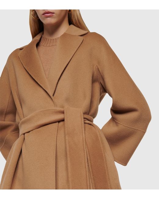 Made in China. Materiale: 100% lana vergine. Chiusura: silhouette aperta. Colore del designer: Perfect Camel. Tasche: tasche a fessura laterali. Cintura annodabile. Trattamento: lavaggio a secco. Lana.