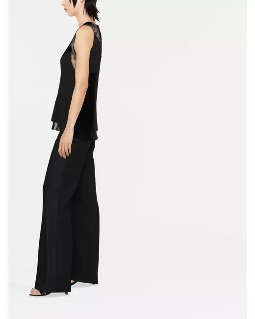 Nero intenso, dettaglio in pizzo, scollo rotondo, senza maniche, orlo curvo e design patchwork.