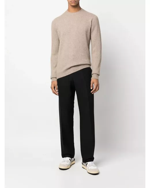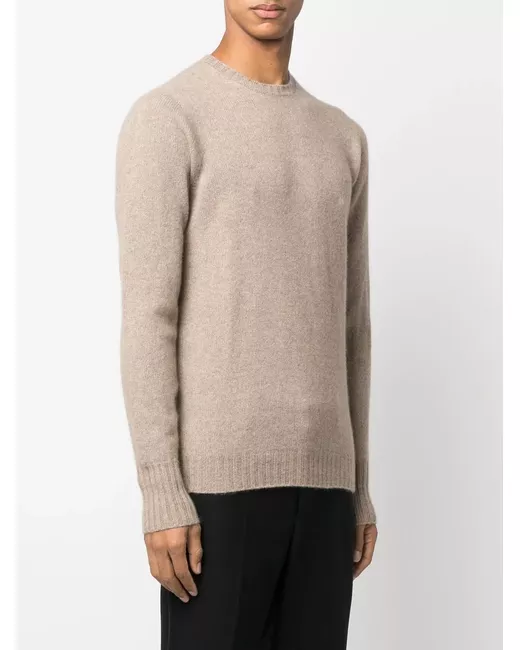 beige cashmere knitted construction crew neck long sleeves ribbed hem ribbed cuffs