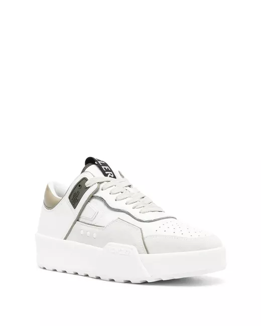 logo-patch chunky sneakers from MONCLER featuring white, calf leather, ridged rubber sole, logo patch to the side, contrasting heel counter, front lace-up fastening, logo patch at the tongue and round toe.