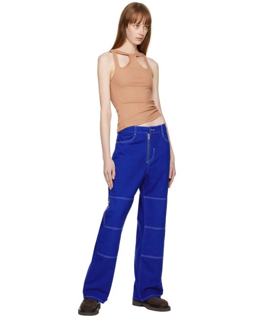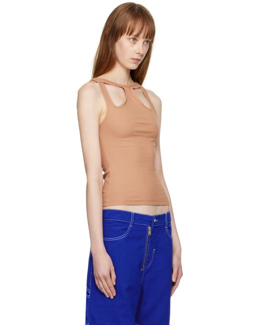 Rib knit stretch organic cotton tank top. · Boat neck · Cutout at front and back · Racer back Supplier color: Camel