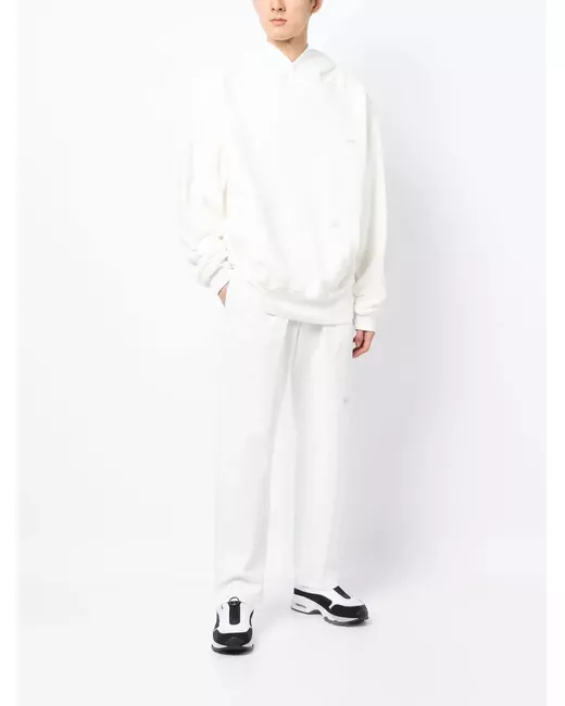 ivory white cotton two side flap pockets rear flap pocket logo patch to the side logo patch to the rear logo patch to the front straight leg straight hem button fly fastening