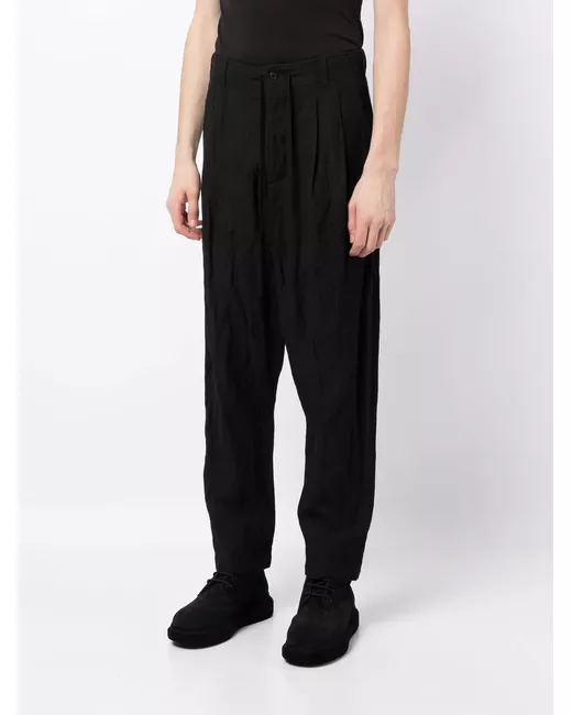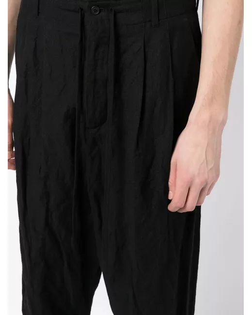 black wool-cotton blend belt loops drawstring fastening waist front button and zip fastening drop crotch two side slit pockets two rear patch pockets