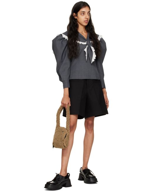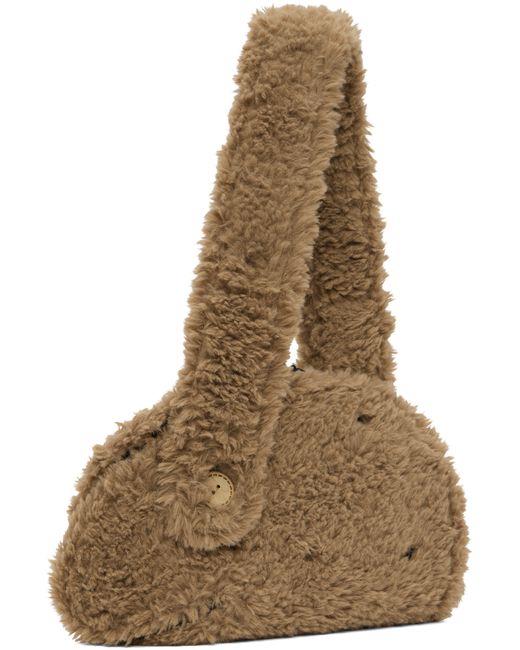 Sculptural faux-fur shoulder bag in brown. · Adjustable shoulder strap · Asymmetric two-way zip closure · Zip and patch pockets at interior · Twill lining · H7.25 x W13 x D1.5 in Supplier color: Brown