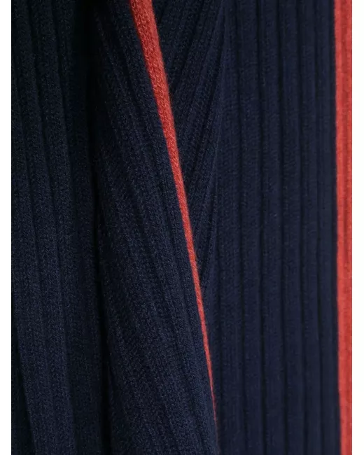 Blu navy, rosso, cashmere, lavorazione a coste, bordo a contrasto e design a giro.