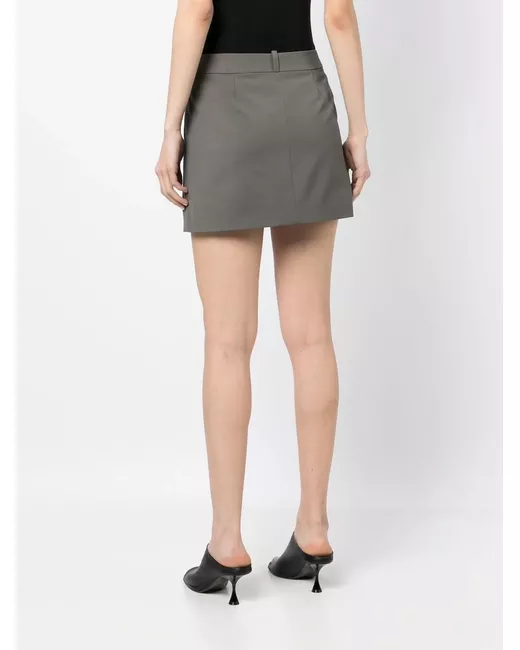 Grigio scuro, vita alta, chiusura frontale nascosta, passanti e orlo dritto.