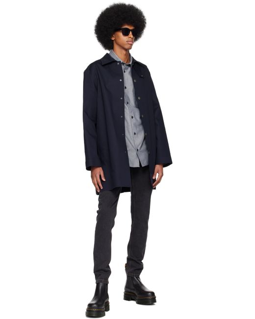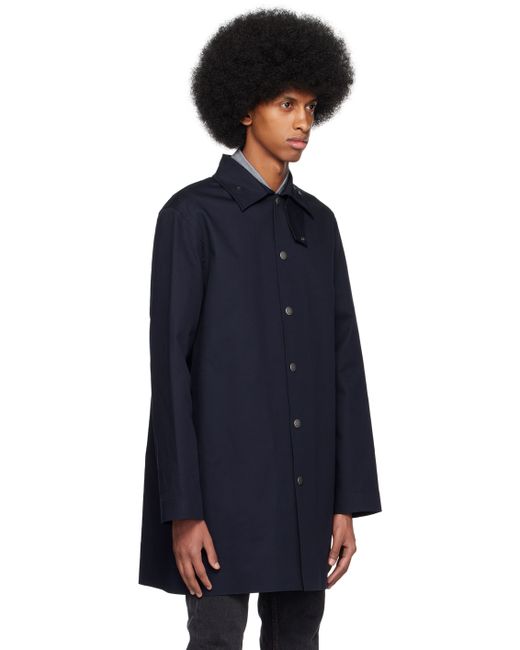 Water-repellent cotton canvas coat. · Throat guard at spread collar · Press-stud closure · Seam pockets · Central vent at back hem · Unlined Supplier color: Dark navy