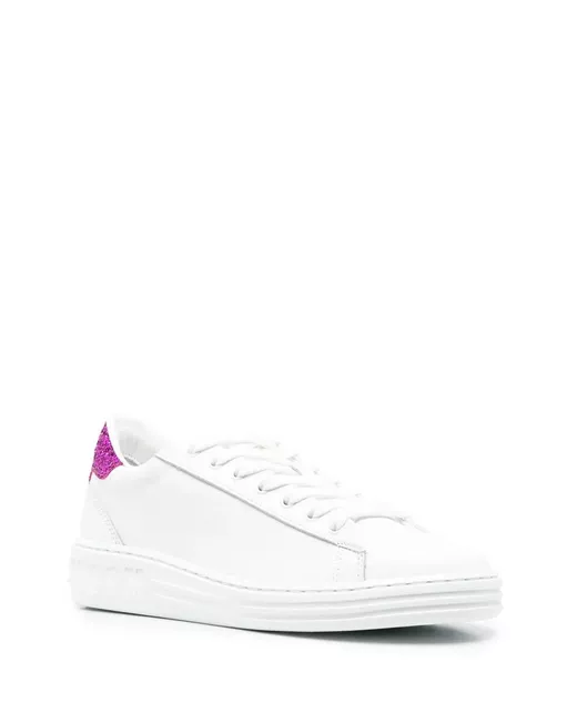 fuchsia pink/white calf leather contrasting heel counter glitter detailing almond toe front lace-up fastening rubber sole