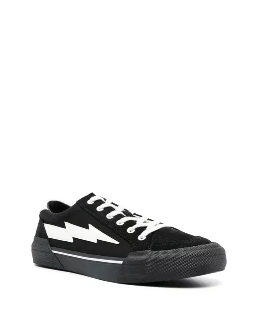 Nero/bianco, pelle scamosciata di vitello, linguetta con logo ricamato, punta tonda, chiusura frontale con lacci e suola piatta in gomma.