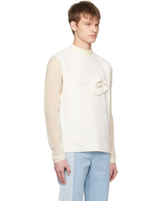 Rib knit wool vest. Distressing throughout. · Paneled construction · Crewneck · Logo patch and mock crewneck at front Supplier color: White