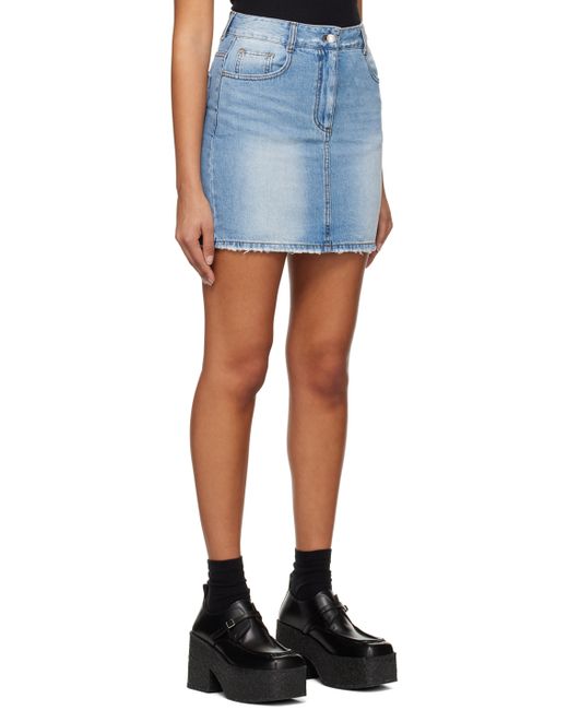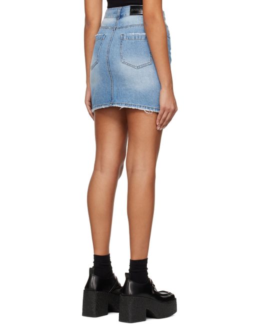 Non-stretch denim skirt. Distressing, fading, and whiskering throughout. · Belt loops · Five-pocket styling · Zip-fly · Leather logo patch at back waistband · Logo-engraved antiqued silver-tone hardware Supplier color: Blue