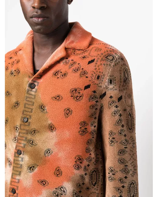 Beige, arancione, cotone, design lavorato a maglia, stampa bandana, colletto con revers, chiusura frontale con bottoni, maniche lunghe e orlo dritto.