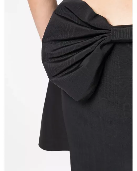 Nero, scollo profondo a V, dettaglio cut-out, dettaglio con fiocco oversize, apertura sul retro e lunghezza sopra il ginocchio.
